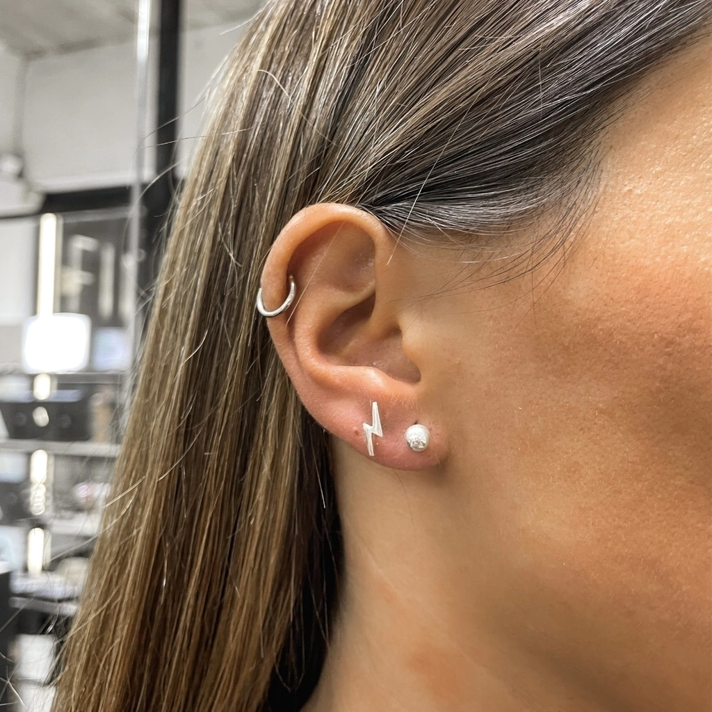 Estos aros pasantes atraviesan el lóbulo de la oreja, y quedan bien pegaditos, no cuelgan y son divinos.