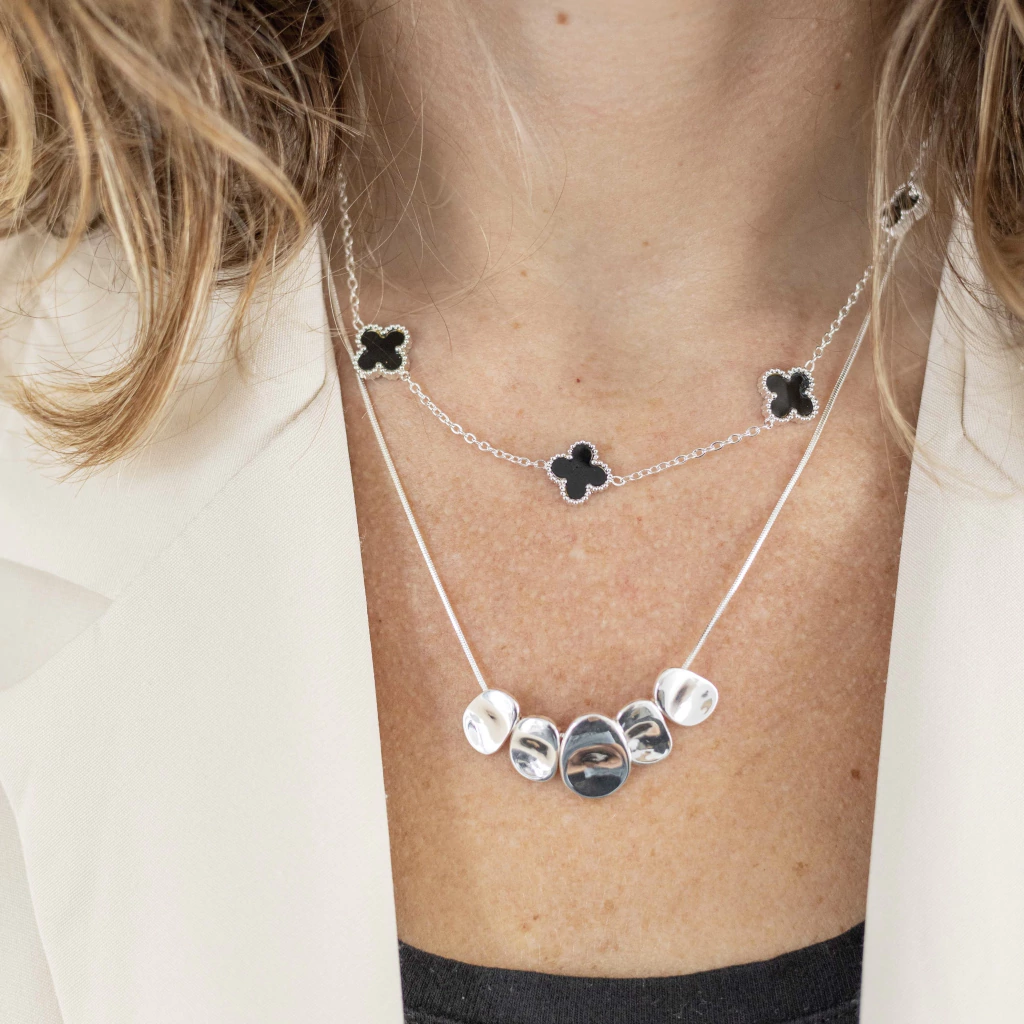 Amamos el ACERO BLANCO por su tonalidad clara y brillante similar a la de Plata 925, con una terminación súper delicada, pero a un precio más accesible. Por tratarse de un baño, el color blanco se puede ir yendo con el uso. El tiempo de duración varía con el trato que la joya recibe, y con la piel de cada persona.