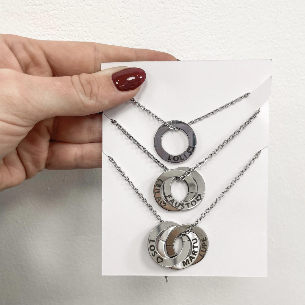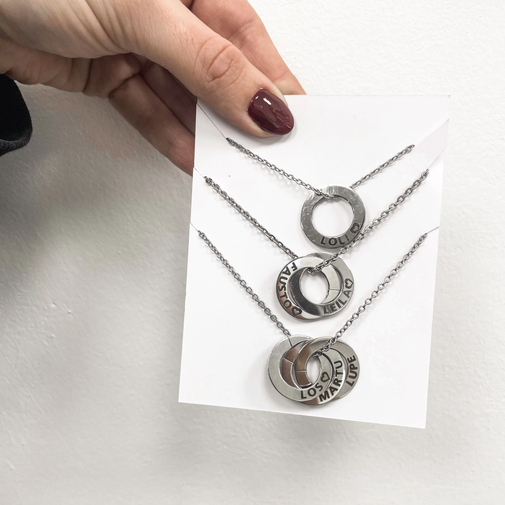 Las joyas personalizadas se hacen por pedido y tienen una demora de 15 dias hábiles. Podes elegir grabarle lo que quieras: tu nombre, el de tu hijo, pareja, mascota o quien vos quieras
