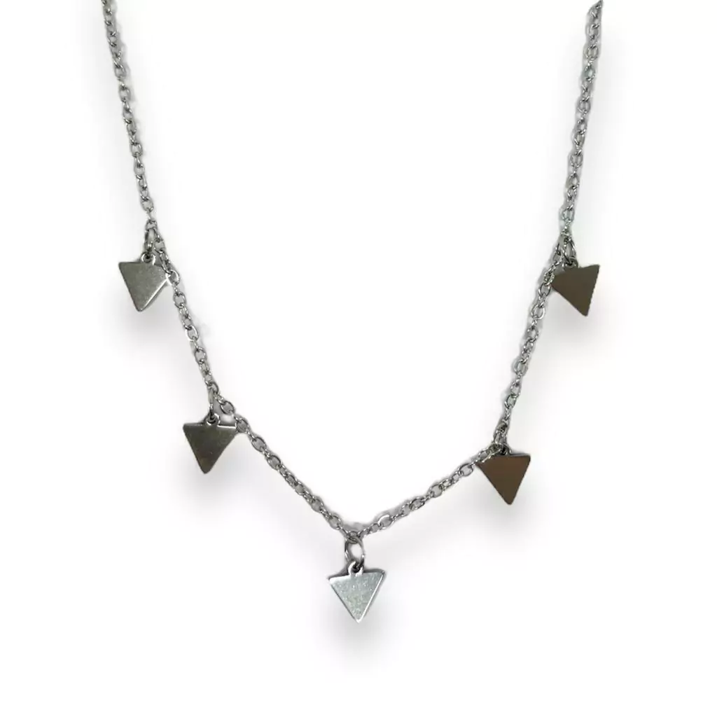 Este collar tiene una pequeña cadenita con dijes con forma de triangulo que lo hace hermoso.