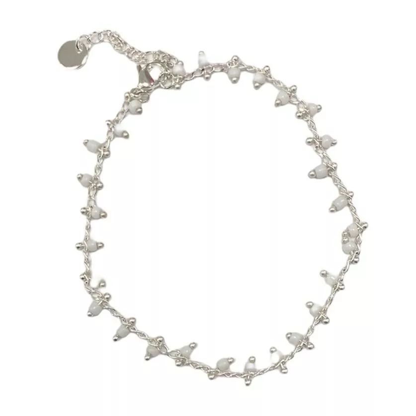 Amamos el ACERO BLANCO por su tonalidad clara y brillante similar a la de Plata 925, con una terminación súper delicada, pero a un precio más accesible. Por tratarse de un baño, el color blanco se puede ir yendo con el uso. El tiempo de duración varía con el trato que la joya recibe, y con la piel de cada persona.